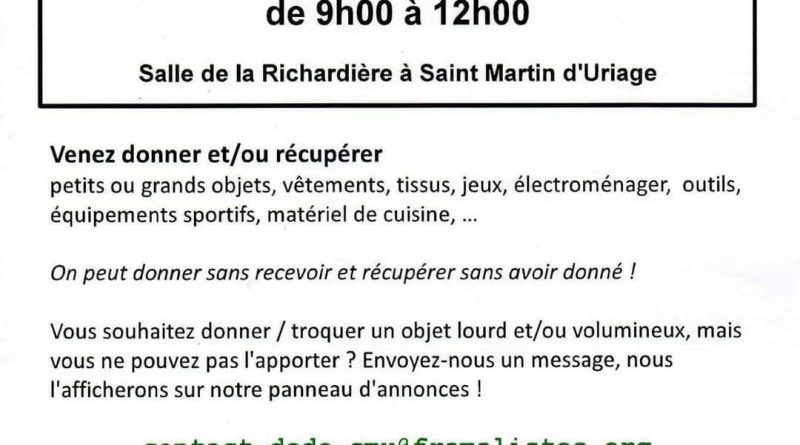 15 janvier : Troc à Dédé, St Martin d’Uriage