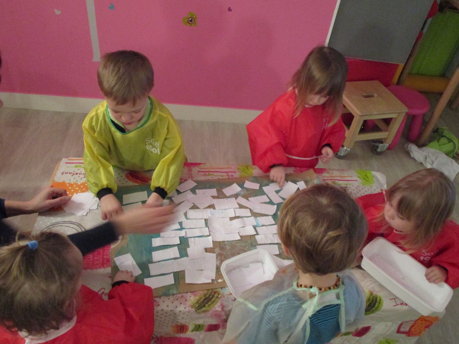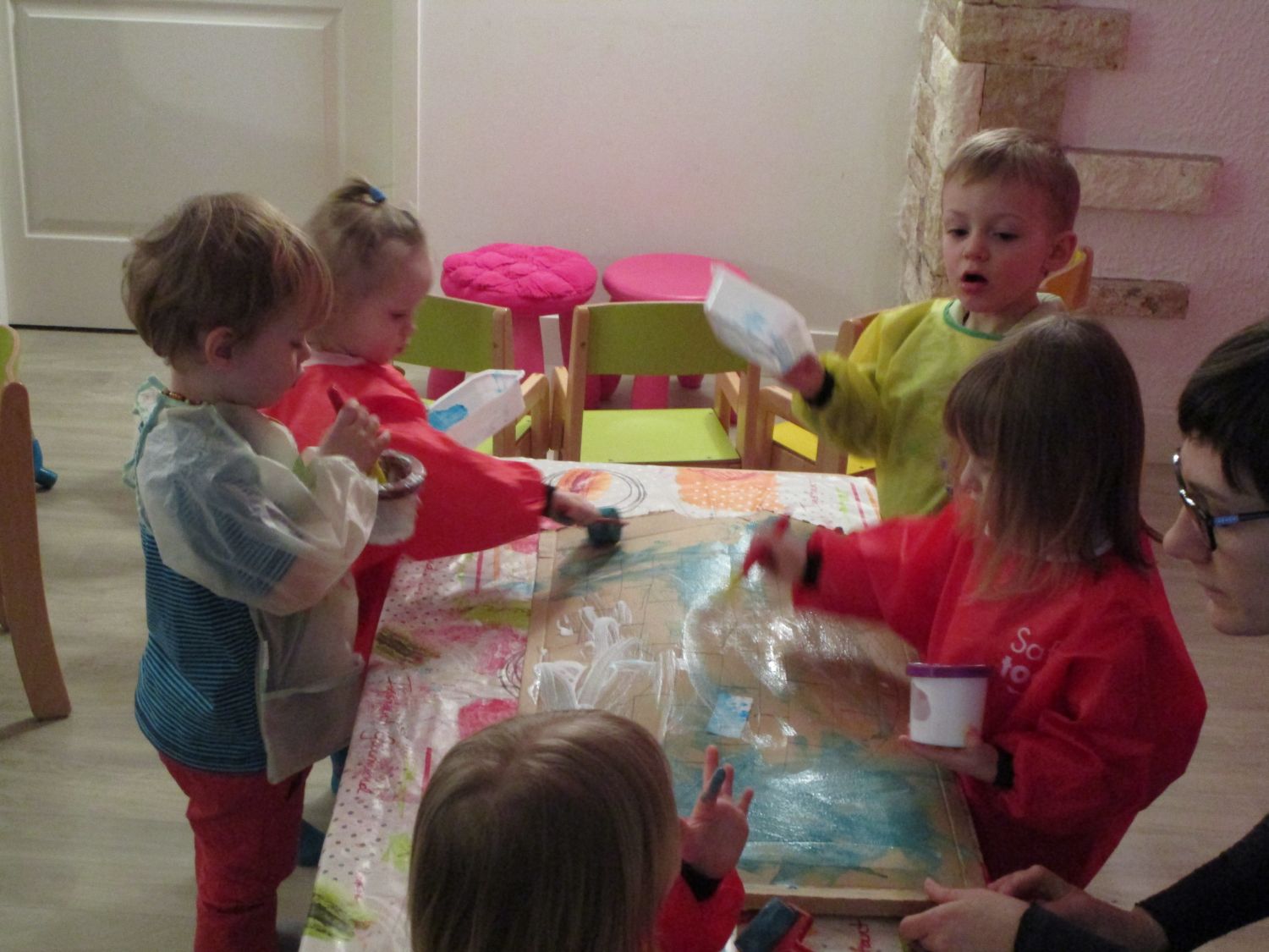 La communication passe par le jeu, des comptines, des histoires, des activités manuelles et dans certains actes du quotidien entièrement en langue anglaise. Et ça fonctionne ! A la p’tite ruche, vous l’aurez bien compris, les plus grands chantonnent déjà « if you’re happy, and you know it… ».