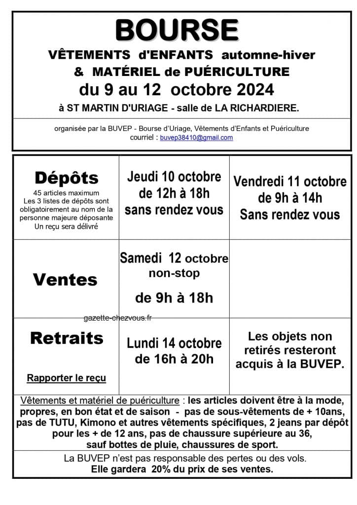 *La bourse aux vêtements AUTOMNE HIVER 2024 aura lieu du jeudi 10 octobre au