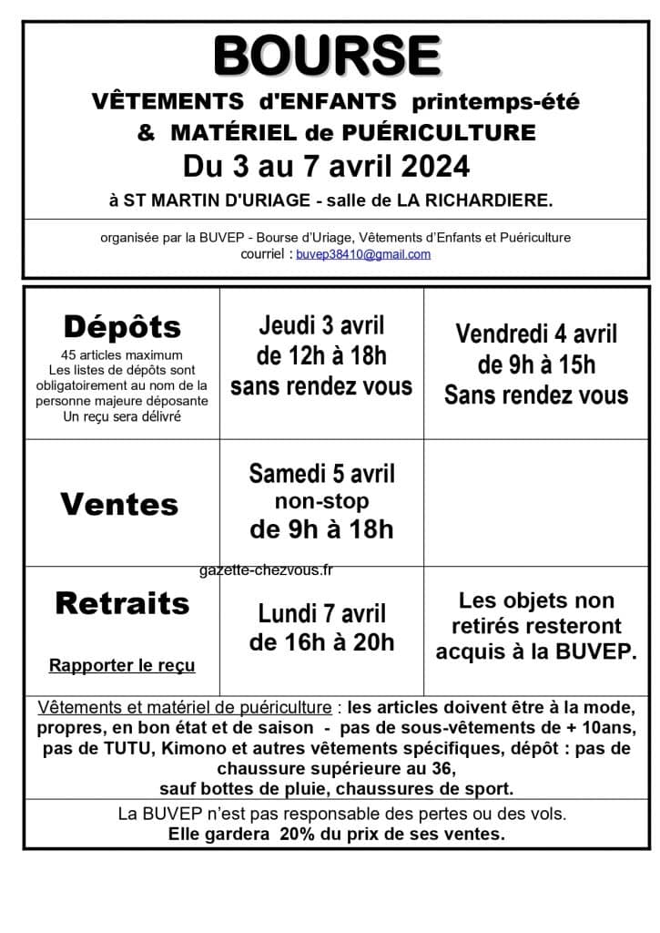 Bourse aux vêtements St Martin d’Uriage 3-7 avril