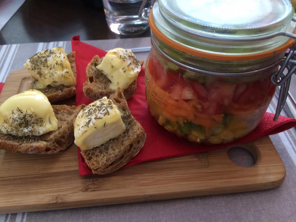 Restauration à midi : carte de burgers et frites maison (miam), salades, desserts.