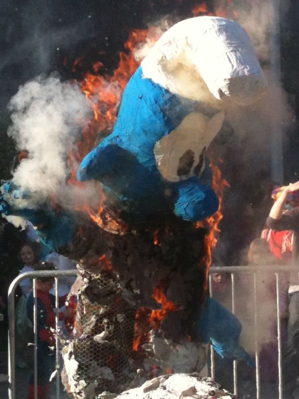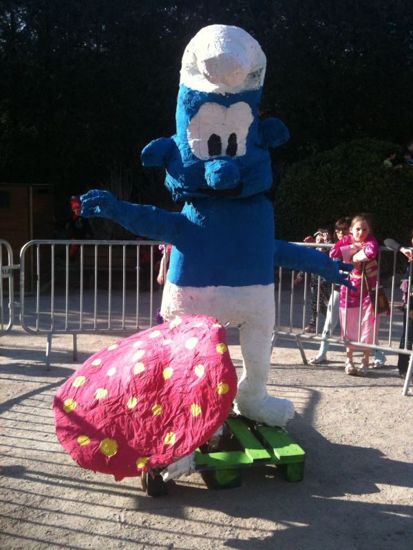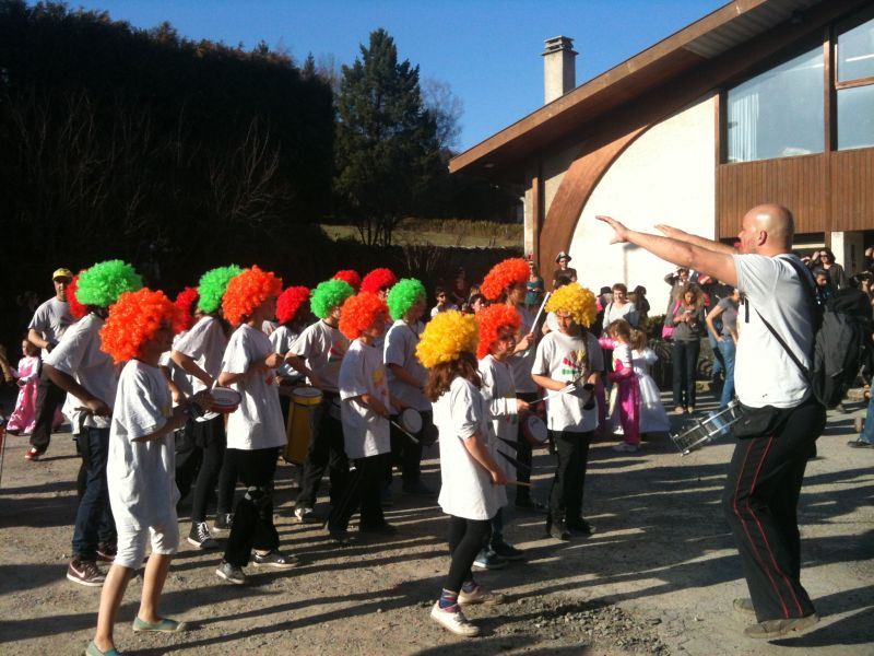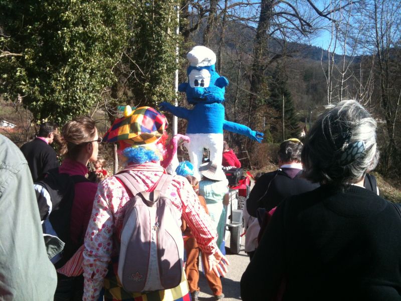 Les enfants et leur parents ont fait le traditionnel tour du bourg de Vaulnaveys-le-haut, guidés par le bonhomme Carnaval, un Schtroumpf dont vous aviez pu découvrir la fabrication dans cet article. Le défilé marchait au rythme d’une batucada, ensemble de percussions orchestré au son du sifflet, ambiance Brazil !