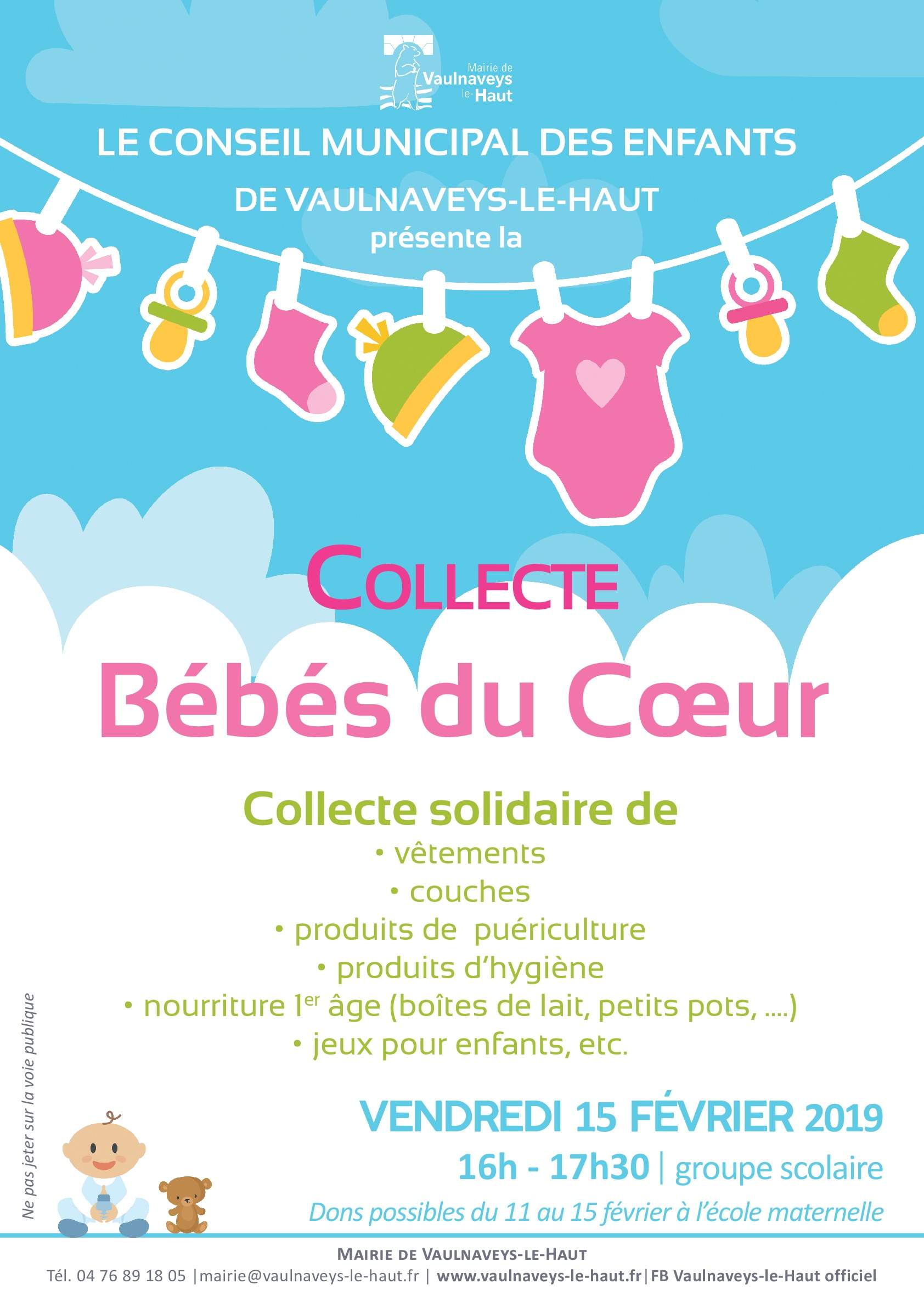 Le Conseil Municipal des Enfants de Vaulnaveys-le-Haut se lance dans une nouvelle collecte solidaire. Cette fois-ci, les petits Vaulnaviards ont eu une pensée pour plus jeunes qu’eux, puisque les dons attendus iront aux Bébés du Cœur.