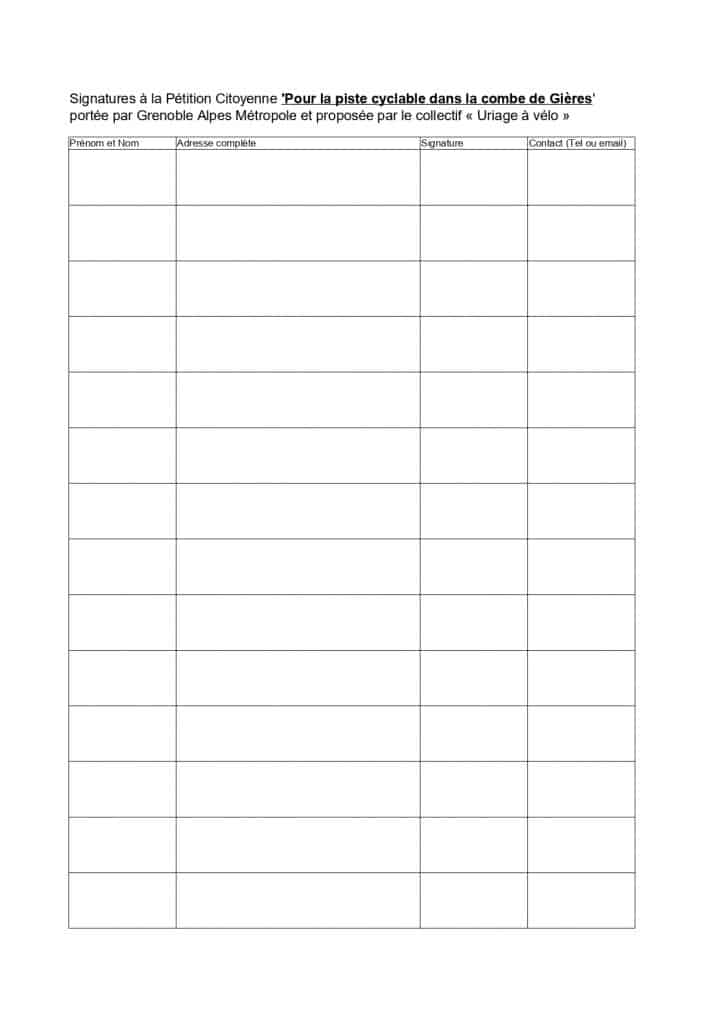 Les signatures papier restent une alternative à la signature en ligne. Le formulaire joint peut être rempli mais il doit être parfaitement lisible et comporter un contact (adresse mail ou No de téléphone) permettant une éventuelle vérification ultérieure, à renvoyer sur l’adresse uriageavelo@gmail.com