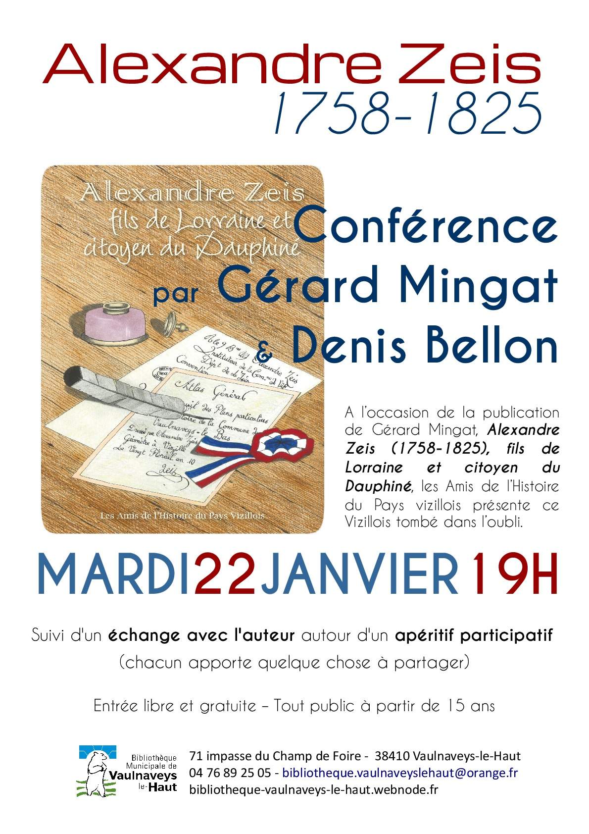 Conférence Alexandre Zeis (1758-1825), bibliothèque Vaulnaveys le haut, le 22 janvier
