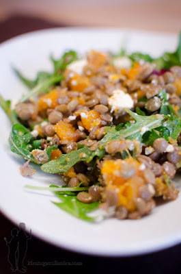 - Aubergine croustillante à la fêta + Salade de lentilles à la courge et poivrons marinés. Dessert : gâteau aux citrons/pavot ou salade de fruits.