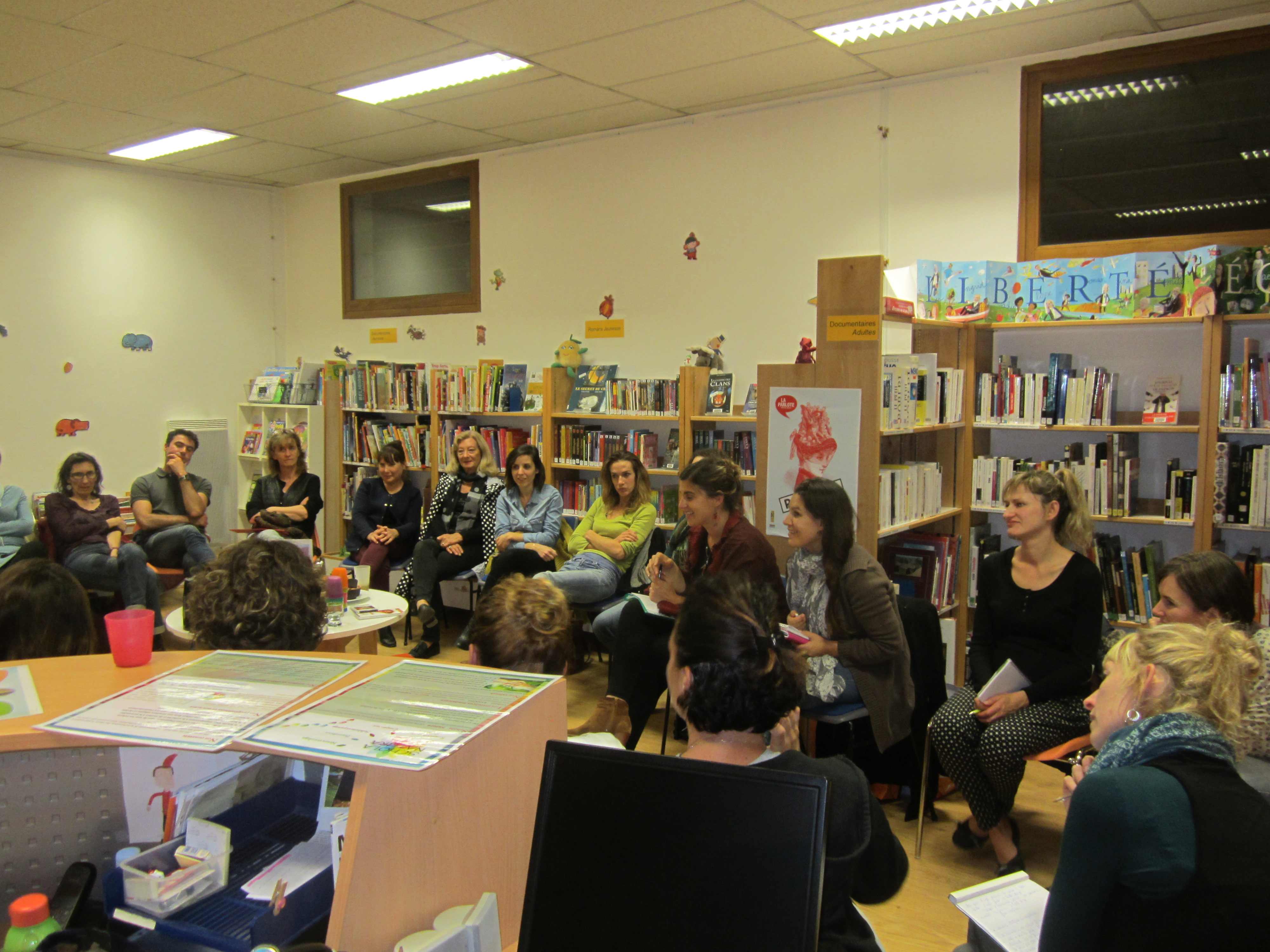 Les animatrices, de même que Laetitia, la bibliothécaire, étaient enchantées du nombre de personnes présentes, ainsi que de la diversité des participantes et des participants : un tiers était composé de parents, un autre tiers d’assistantes maternelles, et un autre tiers d’enseignants. « Qu’autant de personnes soient intéressées par l’éducation autrement est très encourageant, et aussi très révélateur  » nous ont confié Angélique et Violaine.