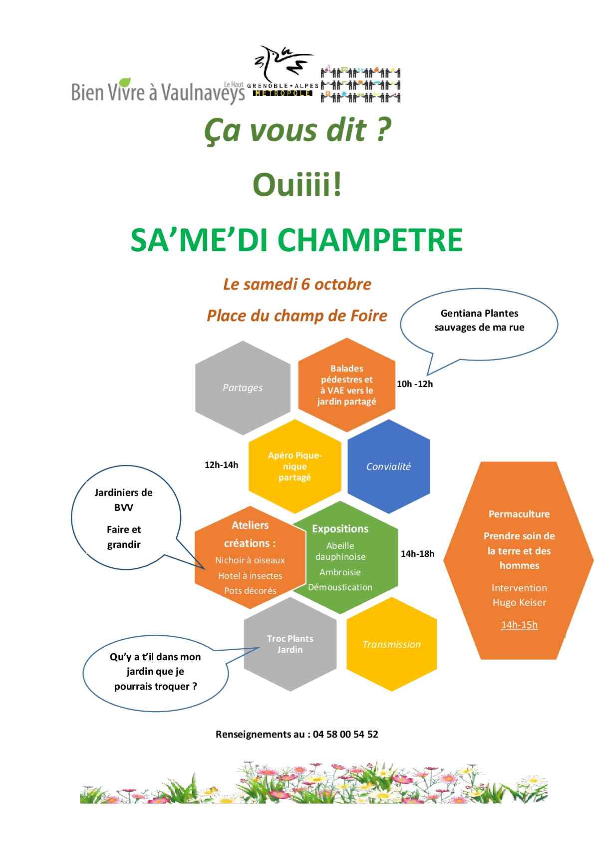 Samedi Champêtre, le 6 octobre à Vaulnaveys le haut, organisé par Bien Vivre à Vaulnaveys