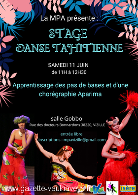 La Maison des Pratiques Artistiques de Vizille vous propose un stage de danse Tahitienne.